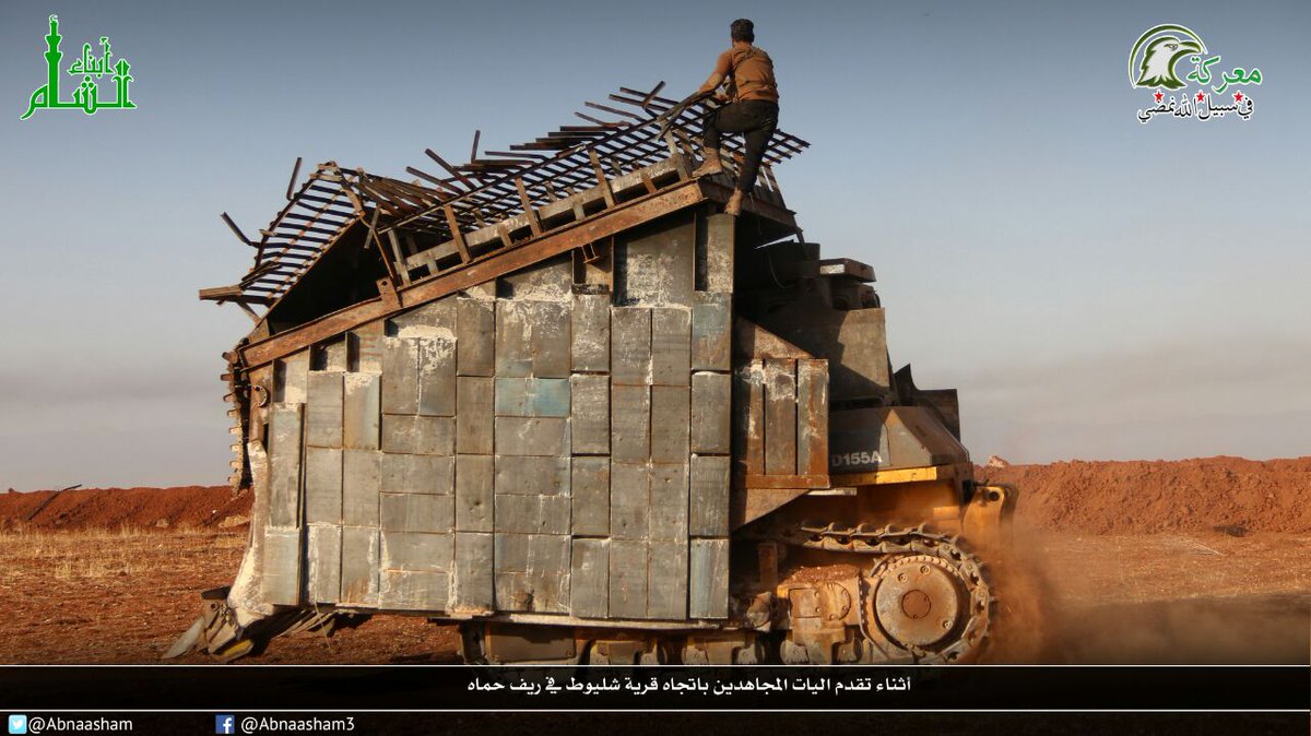 Вот там сейчас воюет, как я понимаю, иракская проправительственная группировка سرايا أنصار العقيدة, конструкторам которой принадлежит авторство множества узнаваемых самопальных бронемашин (знаменитый бронепогрузчик - тоже их рук дело) построила новый флагман своего "пустынного флота". На сей раз это броневик на полноразмерном грузовике 6х6, полностью обтянутым броней. Обитаемые объемы дополнительно защищены решетчатыми режущими экранами (по-моему, они слишком близко к броне, чтобы успеть нарушить геометрию воронки кумулятивного выстрела?). Основное же его вооружение - традиционная ЗУ-23-2, в башне относительно традиционной для этой организации формы.