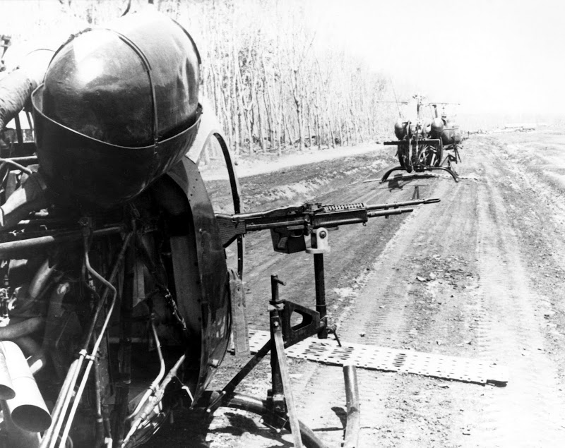 Получив на вооружение принципиально новый вид боевой техники, вертолеты, - американцы первоначально приспособили их под эвакуацию раненых, но ограничиваться только сравнительно мирным использованием было совершенно невозможно. Устоять перед соблазном пострелять со сверхманевренной летательной машины, способной даже зависать в воздухе - было совершенно нереально. И поэтому буквально еще в ходе войны в Корее стрекозки OH-13 (Bell 47) начали получать вооружение. Начали, как водится, полегоньку, с парочки пулеметов на стойках шасси, а потом вошли во вкус.