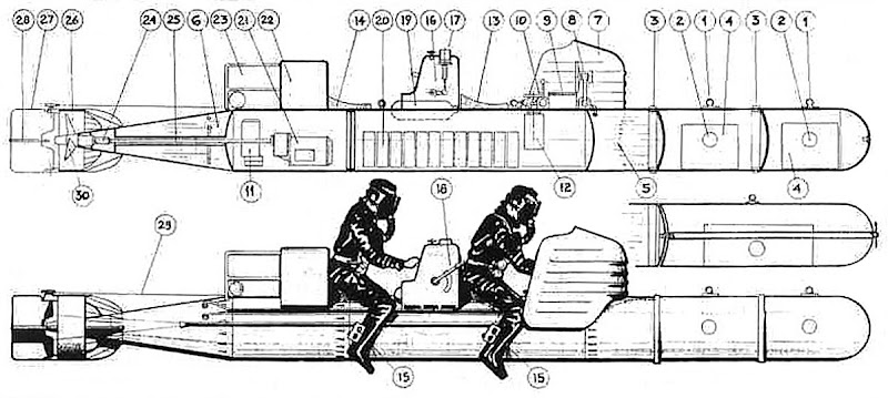 Вот ещё из какой-то книжки страница с клёвым заголовком "Human torpedoes" : ) Просто ссылкой, ибо здоровенная: